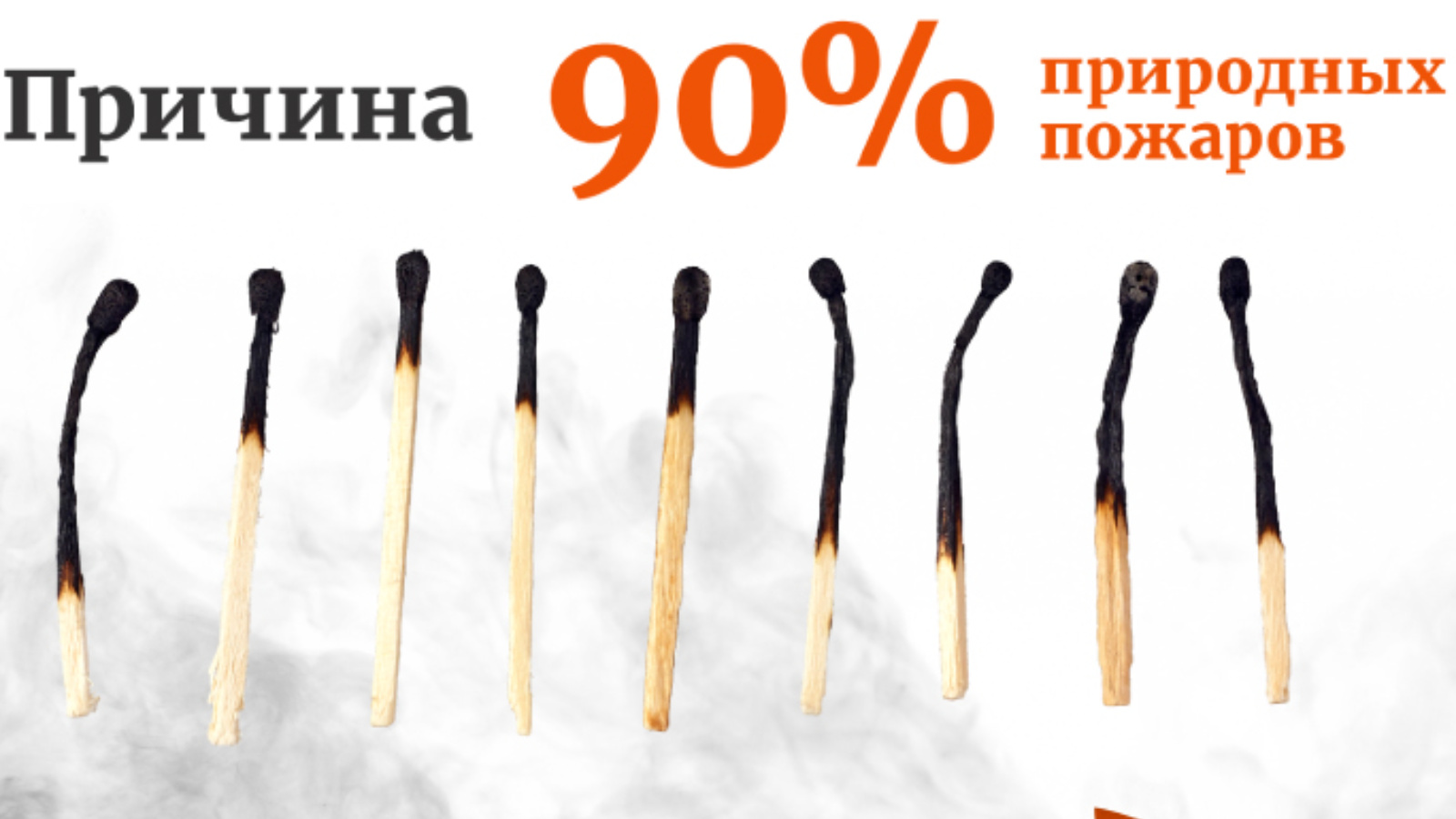 Только от тебя зависит — быть ли катастрофе, ведь 9 из 10 природных пожаров происходят по вине человека. Не поджигай траву. Не позволяй делать это другим. Не бросай окурки. Туши за собой костры