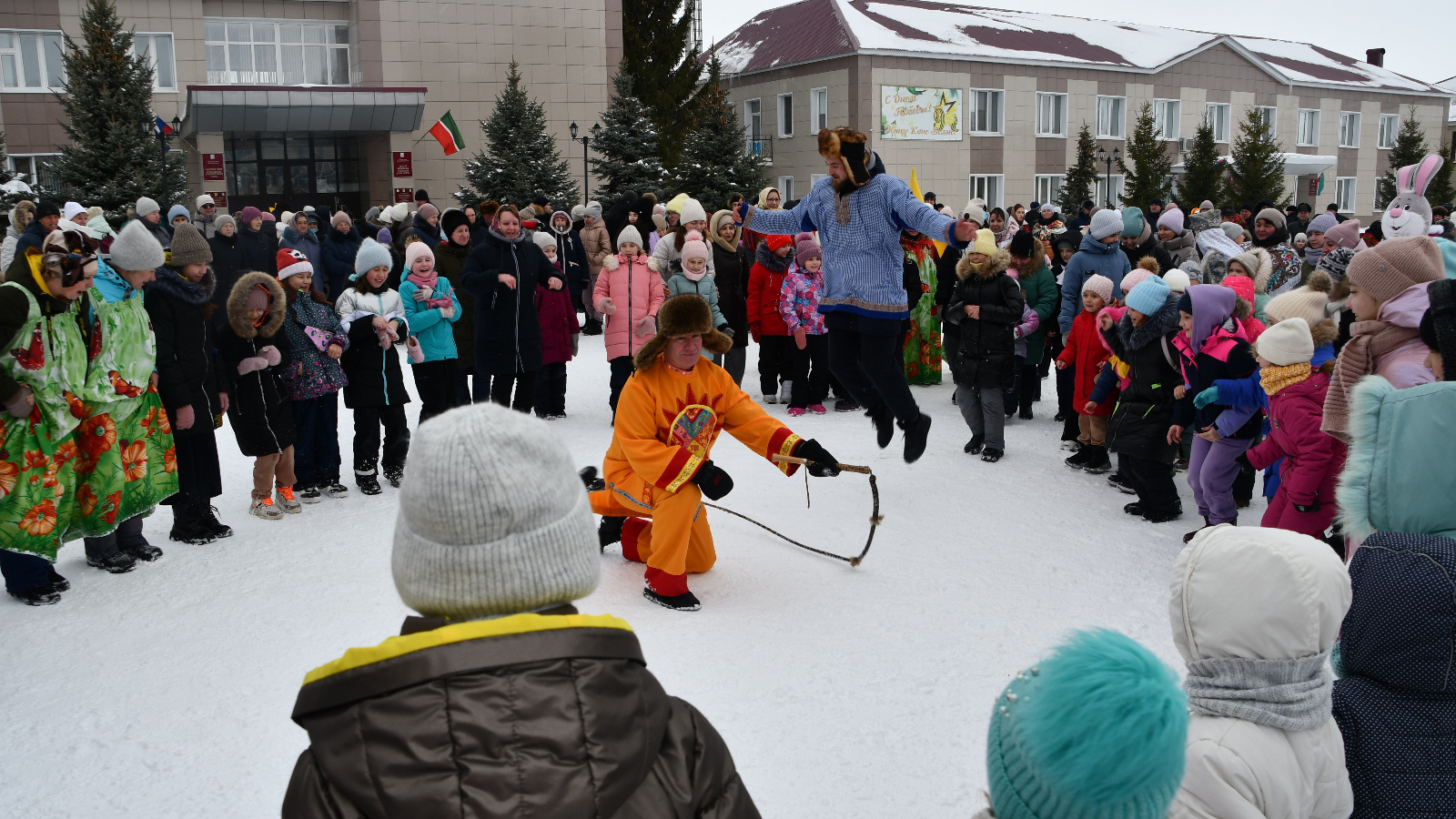 Бәйрәмдә катнашучыларны район башлыгы Камил Гилманов сәламләде. "Быелгы кыш салкын булмаса да, язны шатланып каршы алабыз, ул уңышлы булсын, җир яхшы уңыш бирсен өчен нәтиҗәле эшләргә мөмкинлек бирәчәк". Район башлыгы котлауларыннан соң сәхнәдән масленичный фигуралары конкурсы йомгаклары игълан ителде. Камил Гилманов җиңүчеләргә грамоталар һәм акчалата сертификатлар тапшырды.