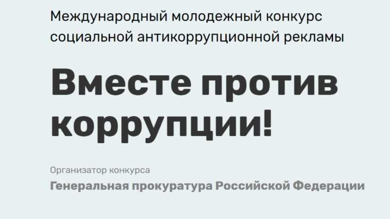 Россия Федерациясе Генераль прокуратурасы тарафыннан «коррупциягә каршы бергә! " Халыкара яшьләр социаль коррупциягә каршы реклама конкурсы үткәрелә.