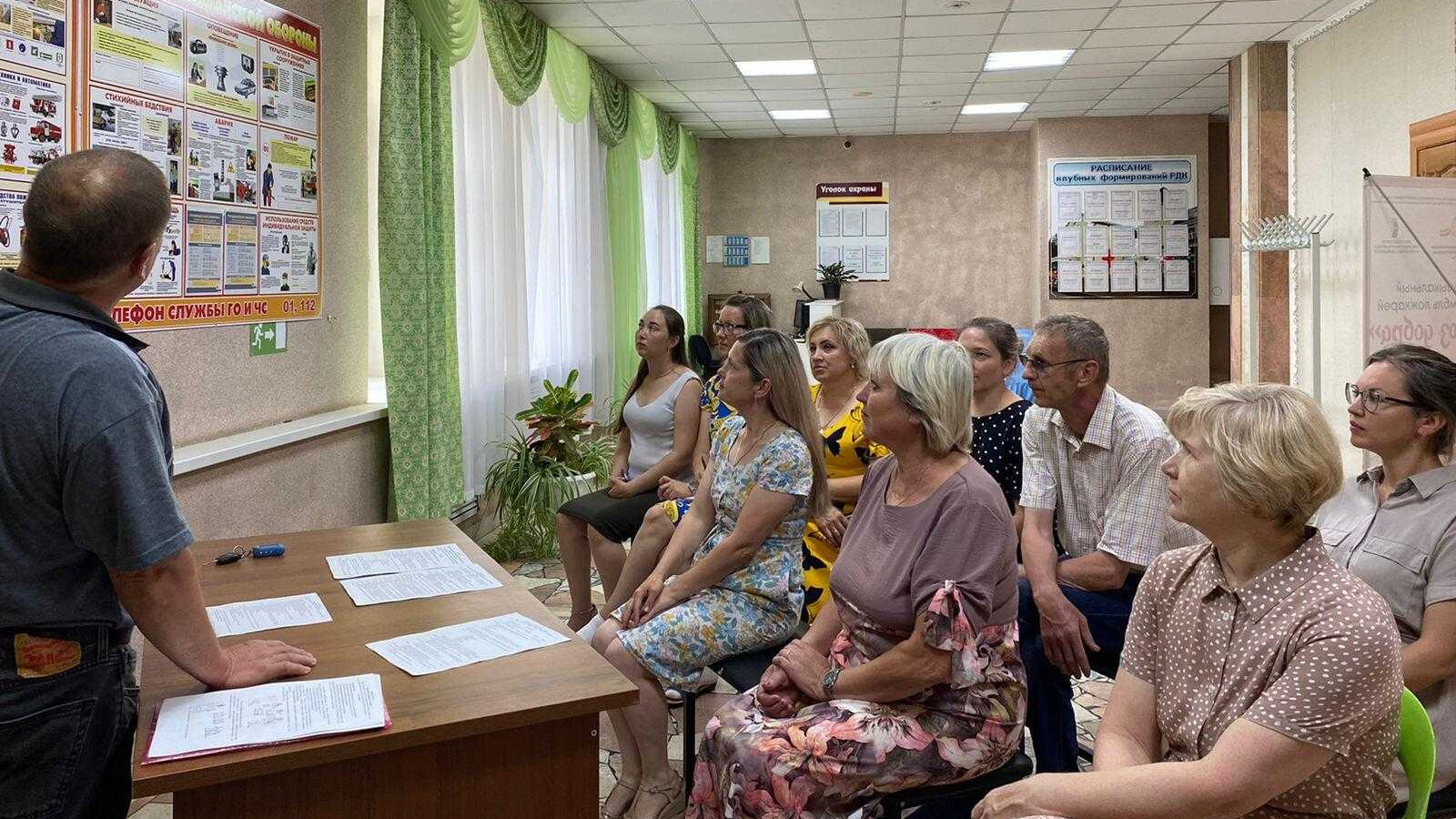 Гражданнар оборонасын өйрәтү барлык гражданнар өчен дә гомуми. Бу вакыйгалар безнең көннәрдә беркемнең дә бәхетсезлек очракларыннан иминиятләштерелмәвен тагын бер кат исбатлый. Шуңа күрә укыту мәсьәләсе һәркем өчен актуаль. Эшләүче һәм эшләмәүче гражданнар өчен УКП буенча инструктор Макаров Юрий су басу вакытындагы гадәттән тыш хәлләр һәм күпләп үтерү коралы - бактериологик һәм химик турында җентекләп сөйләде. Аларга җыелганнар грамоталы һәм профессиональ җаваплар бирелгән сораулар биргәннәр.