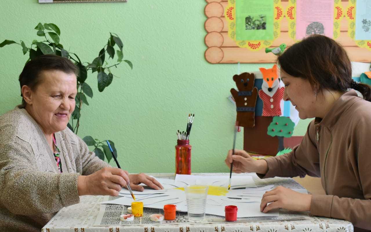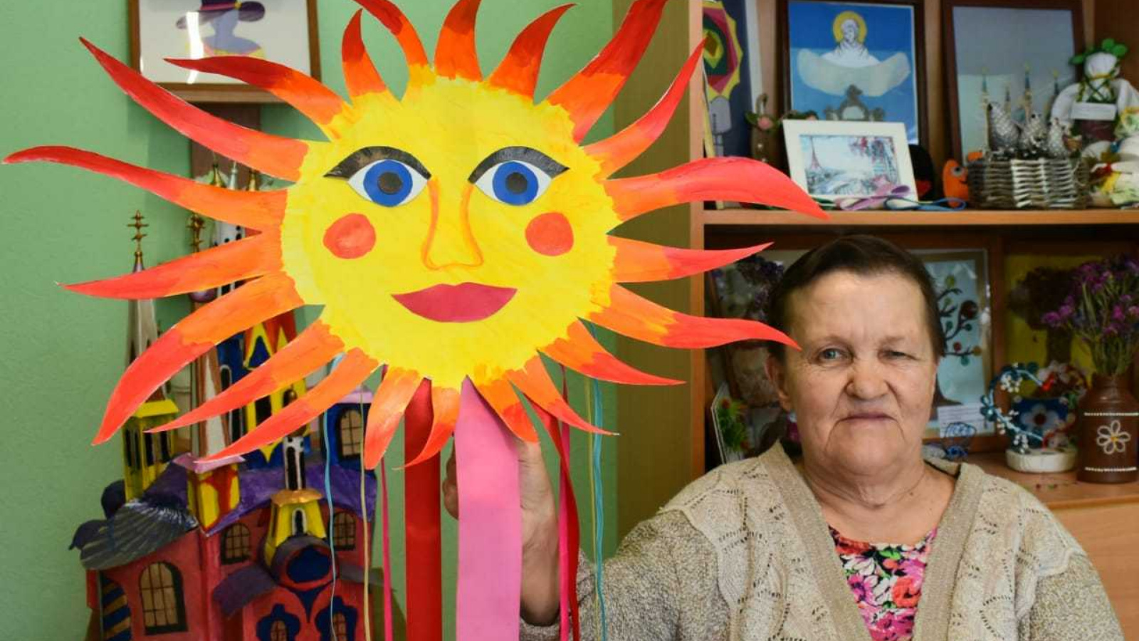 Хезмәт терапиясе дәресендә Федоровка өлкәннәр һәм инвалидлар өчен интернат-йорт тәрбияләнүчеләре хезмәт буенча инструктор Тихонова Ирина җитәкчелегендә бәйрәм символы - Кояш ясаганнар.