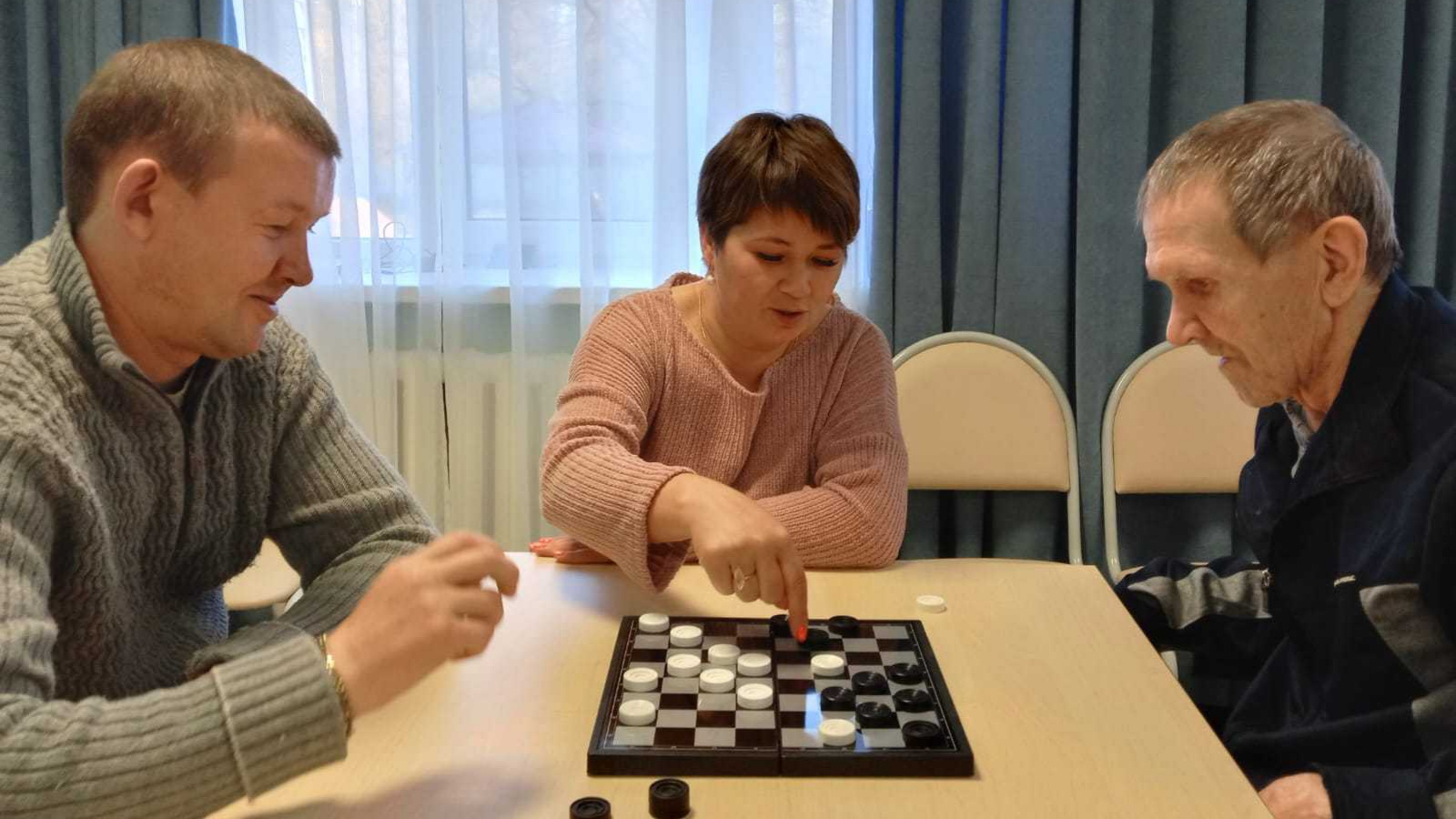 "Әти белән бергә" акциясе кысаларында Федоровскиның картлар һәм инвалидлар интернат-йорты карамагындагылар Тимофей Целищев әтисе Сергей Николаевич белән шашка уйнады. Акция әтиләр көненә багышланган.