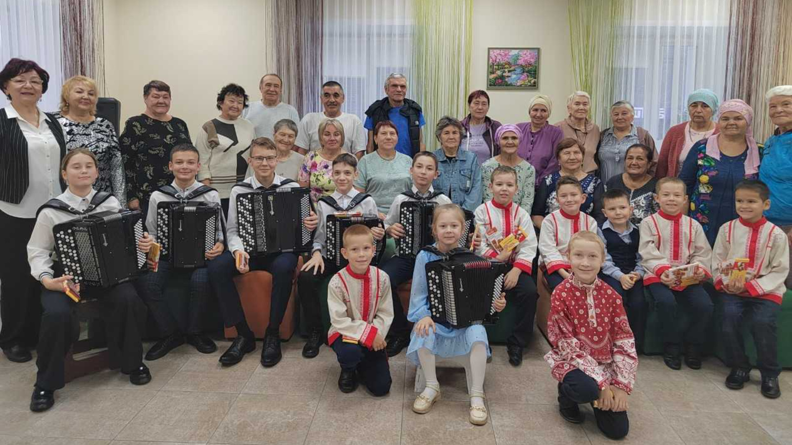 Хезмәт алучылар өчен уңайлы "Нежность" үзәгендә Наилә Крайнова җитәкчелегендәге "Аксубай егетләре" балалар үрнәк баянчылар ансамбле һәм "Союз добра" кашыкчылар ансамбле зур булмаган, ләкин бик әһәмиятле концерты куйды. Талантлы һәм сәнгатькә ашкынучан музыкантлар ял итүчеләргә, тернәкләнү процессын узучыларга шатлык һәм уңай хис-кичерешләр бүләк итәргә булдылар. Без коллективка җанлы музыка атмосферасына чумганнары өчен рәхмәт белдерәбез, анда катнашучыларның барысы да зур соклану белән артистларга көчле алкышлар бүләк иттеләр. Бу үзара бәйләнеш бик күп шатлык китерде һәм барысына да үзләрен бербөтеннең бер өлеше итеп тоярга мөмкинлек бирде. Наилә Сәетовна һәм сезнең талантлы коллективыгызга иҗатыгыз өчен рәхмәт белдерәбез һәм сезне яңадан үзебезнең үзәктә көтәбез.