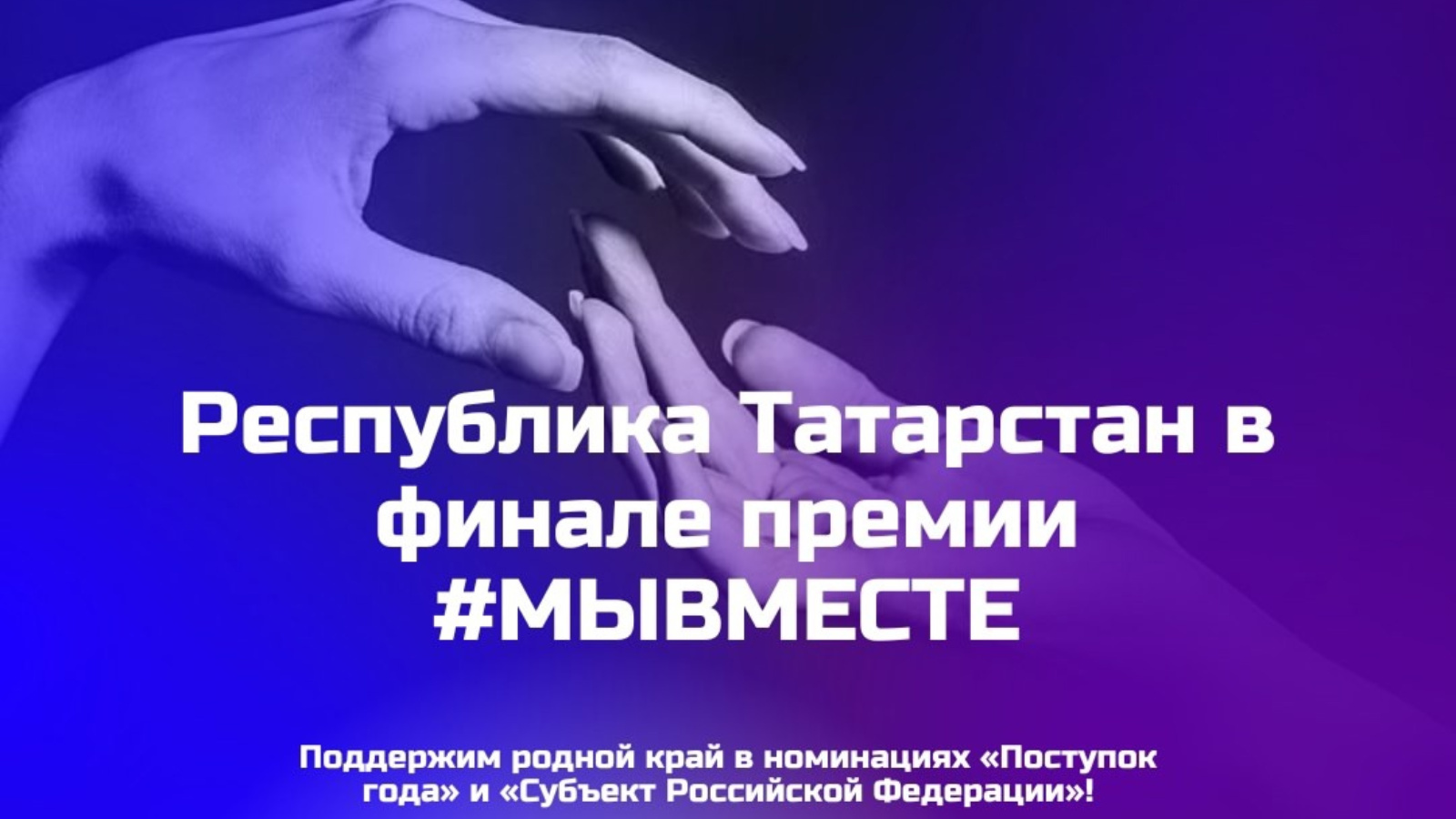 «#МЫВМЕСТЕ " халыкара премиясе финалы 17 октябрьдә старт алды. Әлеге этап халык тавыш бирүен һәм Жюри әгъзалары тарафыннан проектларга бәя бирүне үз эченә ала. Татарстан Республикасыннан финалга ике гариза чыкты, аларны түбәндәге сылтама буенча Халык тавыш бирүендә хупларга мөмкин: https://vk.cc/cCIKN2. Татарстан Республикасы инициативалары «Россия Федерациясе субъекты» һәм «ел гамәле»номинацияләрендә тәкъдим ителде. «Шәхес» категориясендә заявка 2024 елның 7 февралендә 5 нче каттагы балконның ачык тәрәзәсендә кулына кечкенә бала тоткан ир-атны күргән А.Бикмуллин тарафыннан тәкъдим ителгән. Хәлне бәяләп, ул подъезд козырегына менде һәм ир-атның гамәлләрен булдырмый калырга тырышты. Шуңа да карамастан, ир-ат баланы тәрәзәдән ыргыта. Альберт Камилевич баланы тотып ала һәм аның белән бергә көрткә егыла. Ул коткарган яшь ярымлык кыз хастаханәгә китерелә, аның кулы сыну һәм баш мие имгәнүе диагнозы куела. Геройга Россия Тикшерү комитетының «Доблесть и отвага»медале тапшырылды. Татарстан Республикасы «территория» категориясендә үз заявкасын тәкъдим итте, анда төп тезис Иреклелекне үстерү булды. Хәзерге вакытта республикада 216 866 волонтер һәм 25 ачык мал-мөлкәт иясе исәпләнә.Үзәк. Татарстан 2019 елдан 2024 елга кадәр «игелекле эшләр төбәге» конкурсында биш тапкыр җиңүче булды. Шуның нәтиҗәсендә иң яхшы төбәк тәҗрибәләрен гамәлгә ашыруга 40 миллион сумнан артык акча җәлеп ителде. Халык тавыш бирү ВКонтакте мини-кушымтасында 17 октябрьдән алып 2024 елның 21 ноябренә кадәр 23:59 (Мәскәү вакыты белән) кадәр дәвам итәчәк. Халык тавыш бирү кагыйдәләре белән Вконтактеның мини-кушымтасында танышырга мөмкин (https://vk.cc/cCIKN2). Моннан тыш, экспертлар бәяләве нигезендә #МЫВМЕСТЕ-2024 Халыкара премиясенең ТОП-1000 гаризасы билгеләнде. Һәр катнашучы Росмолодежның «больше чем путешествие»программасыннан Россия буенча сәфәргә сертификат алачак. ТОП-1000 исемлегенә Татарстан Республикасыннан 24 инициатива кергән.