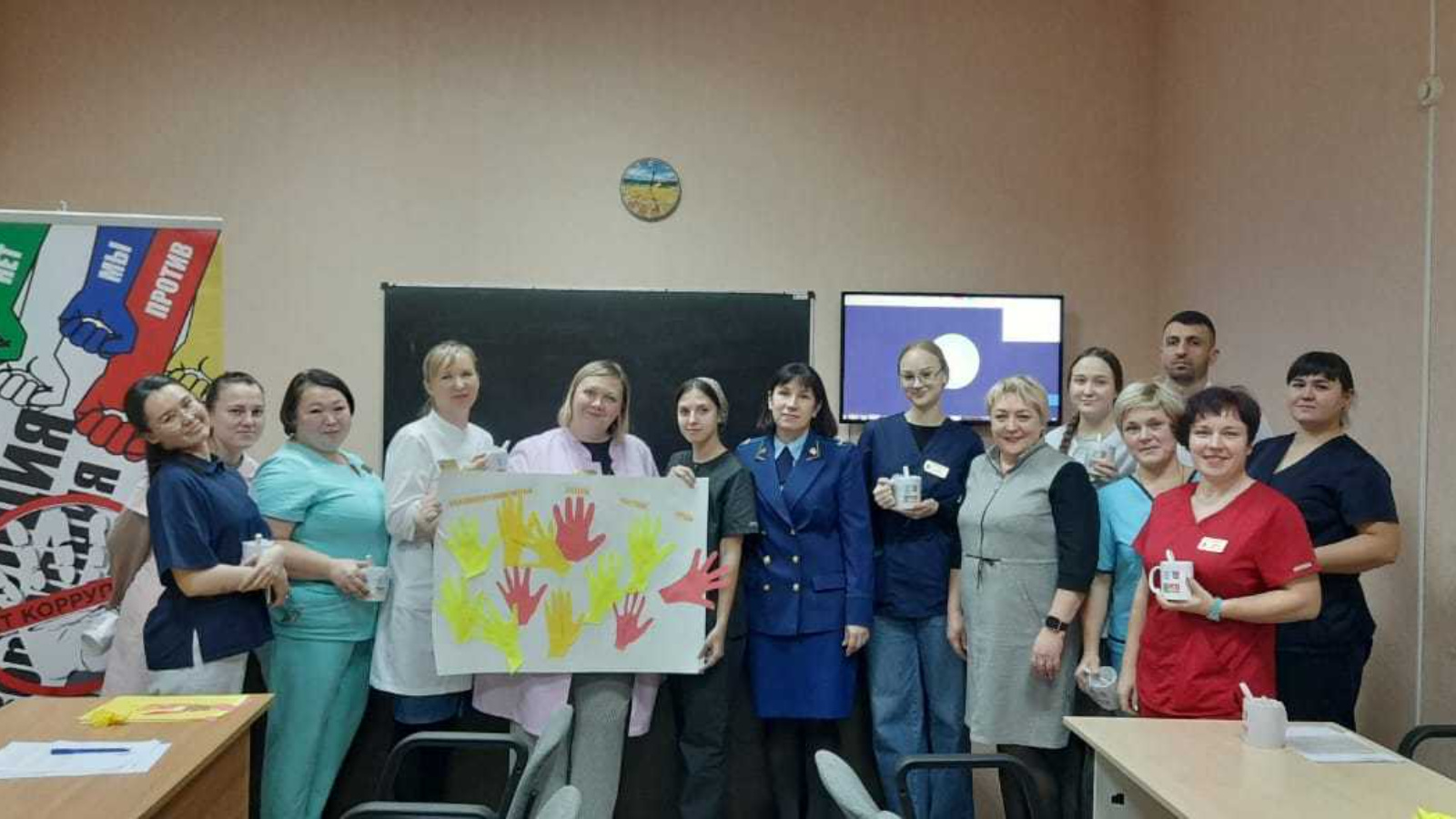 «Аксубай үзәк район хастаханәсе» ДАССОның медицина хезмәткәрләре белән Халыкара коррупциягә каршы көрәш көненә багышланган план кысаларында башлык ярдәмчесе Эльмира Крайнова «Коррупциягә сугыш игълан ителде»дип аталган коррупциягә каршы уен уздырды. Катнашучылар ике командага бүленеп, биремнәрне үтәделәр, коррупциягә каршы сәясәт мәсьәләләрендә юридик грамоталылыкларын арттырдылар, уен нәтиҗәләре буенча коррупциягә каршы законнар буенча белемнәрен арттырдылар һәм уңай эмоцияләр алдылар. Чарада прокурор урынбасары Лариса Горожанкина катнашты, ул катнашучыларга безнең район буенча ачыкланган коррупцион хокук бозулар турында мәгълүмат җиткерде. Чарада катнашучылар «Чиста куллар»акциясендә катнаштылар.