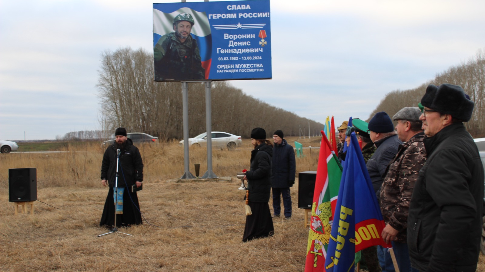 Түбән Баланда авылы янындагы чатта бүген махсус хәрби операциядә катнашучы, Батырлык ордены кавалеры Денис Воронин истәлегенә билборд ачылды.