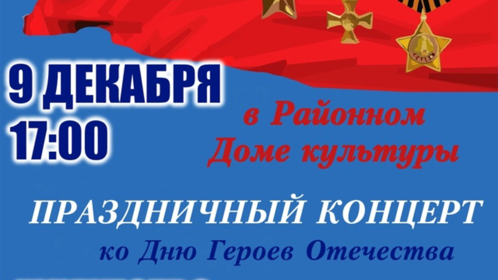 Бүген, 9 декабрьдә, район мәдәният йортында Ватан Геройлары көненә багышланган зур бәйрәм концерты була.