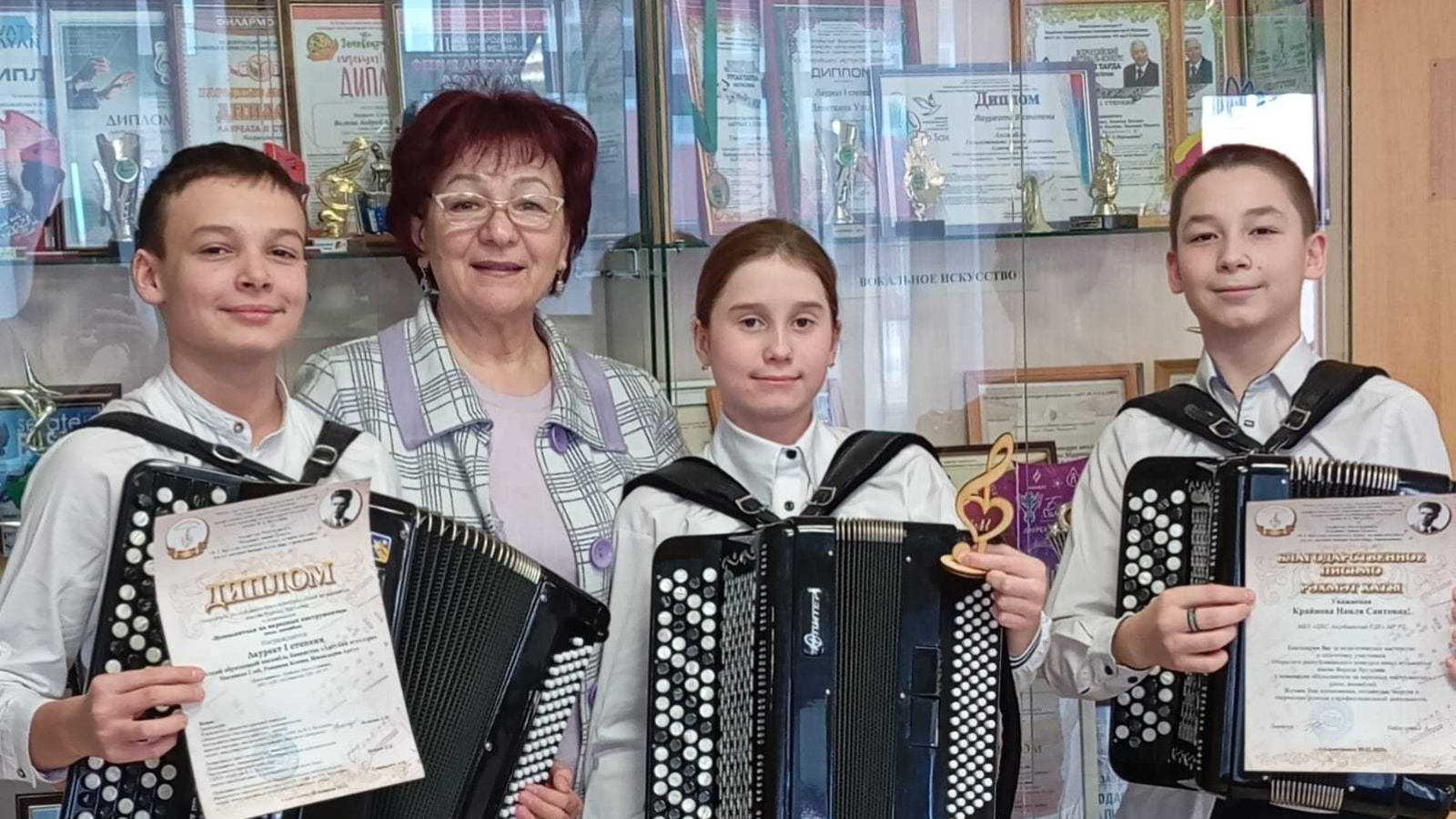 8 февраль көнне "Аксубай егетләре" үрнәк баянчылар балалар ансамбле (җитәкчесе ТРның атказанган мәдәният хезмәткәре Наилә Крайнова) яңа составта: Глеб Мясников, Ксения Романова һәм Артур Искәндәров Әлмәт шәһәрендә яшь музыкантларның Фәрит Яруллин исемендәге ачык республика конкурсында катнаштылар. "Ансамбль" номинациясендә Әлмәт, Бөгелмә, Лениногорск, Азнакай, Актүбә, Урыссу, Җәлил, Нурлат, Чирмешән, Баулы һәм Аксубайдан катнашучылар көч сынашты. Безнең егетләр ышанычлы чыгыш ясадылар һәм "Аксубай егетләре" ансамбле лаеклы рәвештә 1 нче дәрәҗә лауреат исемен алды. Талантлы коллективны һәм аларның талантлы җитәкчесе Наилә Крайнованы бик яхшы чыгышлары белән котлыйбыз һәм киләчәктә дә иҗади уңышлар телибез!