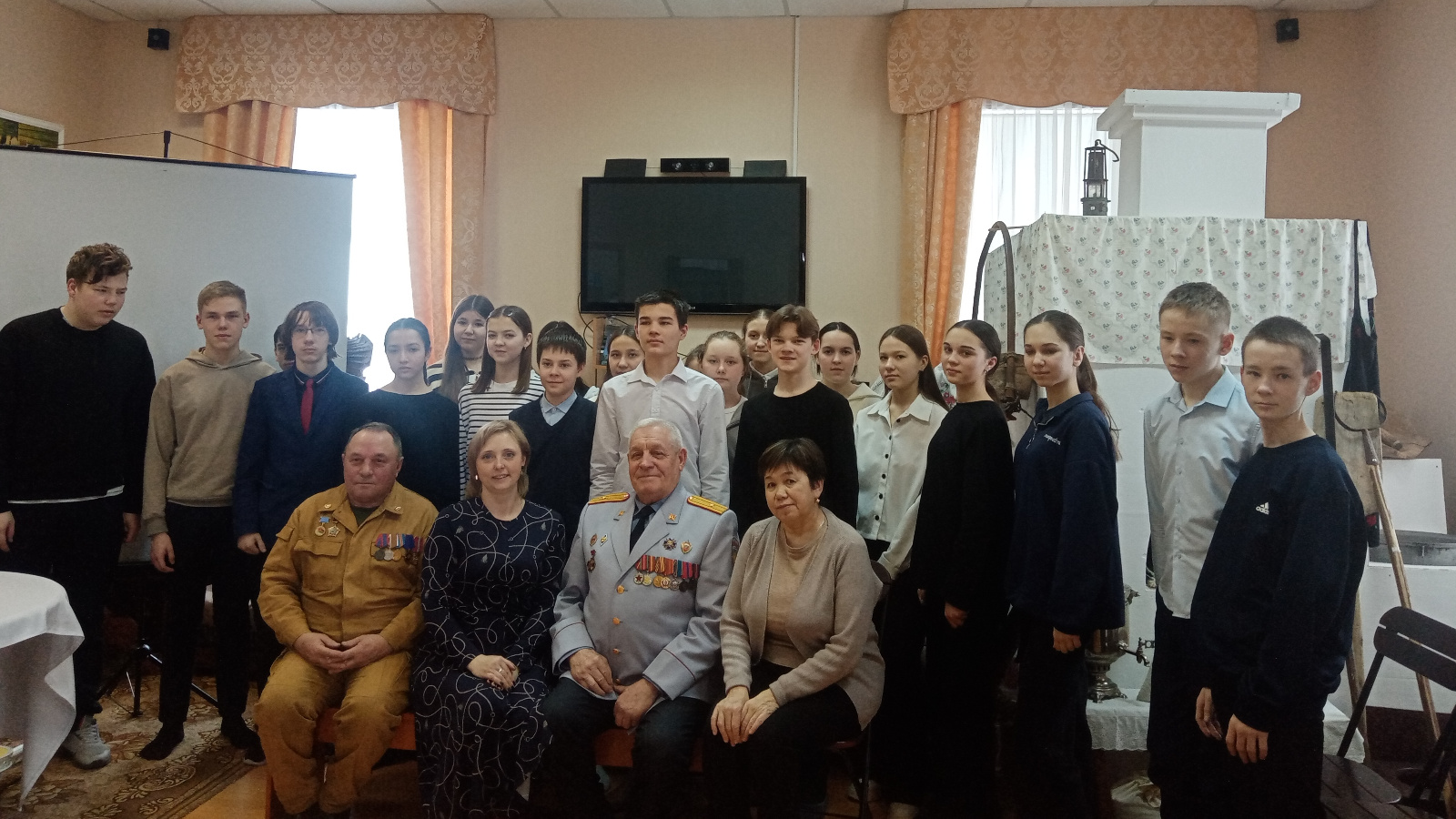 Истәлекле көн алдыннан Аксубай туган якны өйрәнү музеенда әфган сугышы ветераны, полиция полковнигы Хәйруллин Гомәр Әмир улы һәм Россия Эчке эшләр министрлыгының Аксубай районы буенча бүлегенең ветераннар советы рәисе отставкадагы милиция майоры Сәхабетдинов Шамил Имаметдин улы белән очрашу булды. 15 февраль-Совет гаскәрләрен Әфганстаннан чыгару көне. Бу көнне 1989 елда Совет гаскәрләренең чикләнгән контингентының соңгы бүлекчәләре туган якларына әйләнеп кайта. Истәлекле көн алдыннан Аксубай туган якны өйрәнү музеенда әфган сугышы ветераны, полиция полковнигы Хәйруллин Гомәр Әмир улы һәм Россия Эчке эшләр министрлыгының Аксубай районы буенча бүлегенең ветераннар советы рәисе отставкадагы милиция майоры Сәхабетдинов Шамил Имаметдин улы белән очрашу булды. Гомәр Гамир улы егетләргә ничек хезмәт иткәне һәм хезмәт вакытында нинди бүләкләр алганы турында сөйләде. Аның хәтерендә ул коточкыч көннәрдәге вакыйгалар бүгенге көнгә кадәр саклана. Шамил Имаметдин улы Бөек Ватан сугышы тарихы, Әфган сугышы, Ватанны саклаучыларның батырлыгы турында сөйләде, укучылар белән ватанпәрвәрлек һәм Ватанга лаеклы хезмәт итү турында сөйләштеләр.