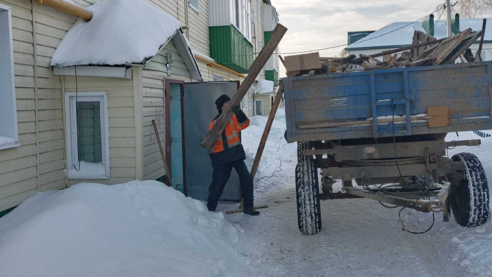 "Аксубай шәһәр тибындагы бистәсе" ҖЧҖ эшчеләре Ленин урамындагы 14 нче йорт подвалында җиһаз кую бүлмәләрен сүтә.