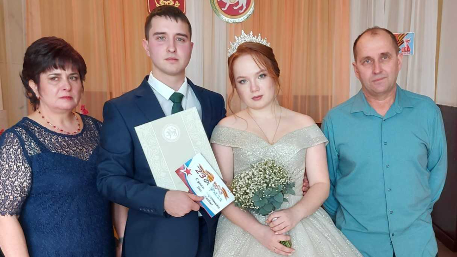 Яшь пар Маркитанов Денис һәм Элина өчен никахлашуны теркәү икеләтә тантаналырак булды. Ватанны саклаучылар көне алдыннан яшь ир белән хатын «Безнең батырларга»акциясендә катнаштылар. Гаиләләре оешкан көнне алар якташларына – махсус хәрби операциядә катнашучыларга җылы рәхмәт сүзләре язылган котлау открыткасына кул куйдылар.