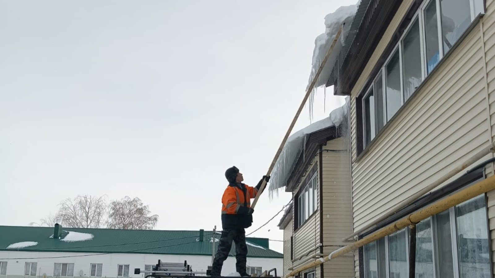 Язгы җылы килү белән идарәче компания түбәләрне кардан һәм боздан чистарту эшләрен активлаштырды.