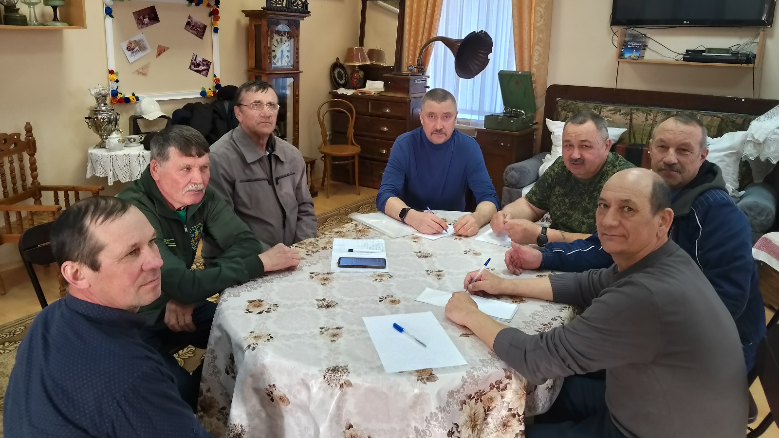9 апрельдә ветераннар (инвалидлар) "Сугышчан хәрәкәтләр һәм хәрби хезмәт ветераннары берлеге" иҗтимагый оешмасының чираттагы утырышы булды. Анда гаскәрләр вәкилләре, "Чик сакчылары берлеге" ТИО вәкиле Степанов Ю.Ф., ӘМР мәдәният бүлеге башлыгы Тимирясов А.С. һәм музей директоры, Куштуков җәмгыяте секретаре Н.Г. катнашты. Утырышта 9 майда Бөек Җиңүгә багышланган чаралар уздыру мәсьәләләре каралды.