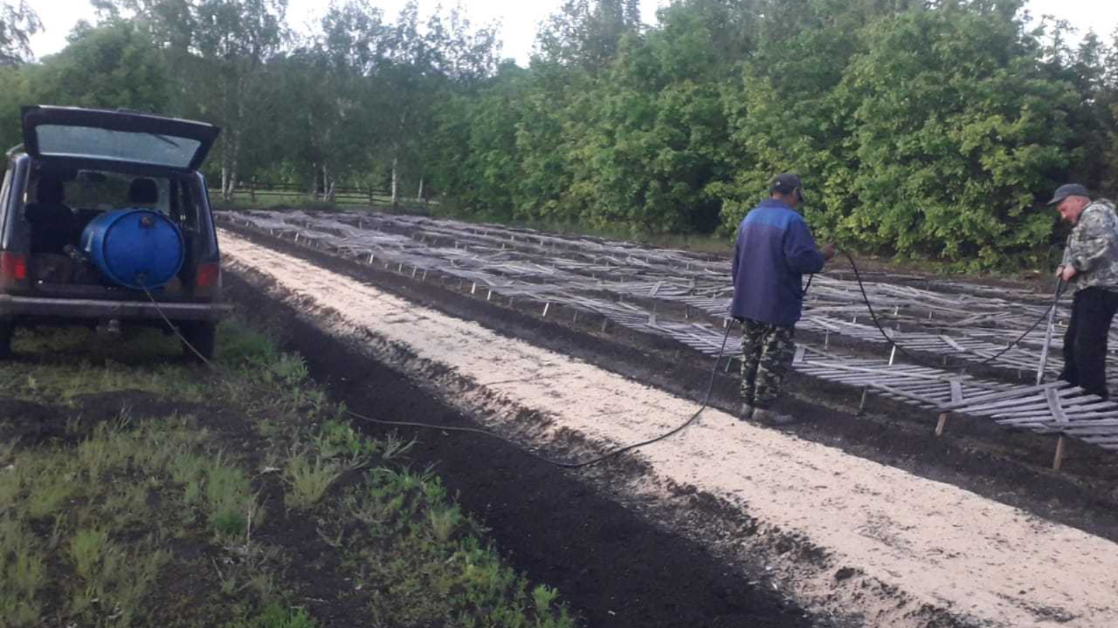 «Аксубай урманчылыгы» хезмәткәрләре Аксубай, Ибрай, Чабаксар кишәрлек урманчылыклары питомникларында каен чәчүлекләренә альтернариоздан сиптерү эшләрен, препарат (фунгицид) - Байзафон кулланып башкаралар.