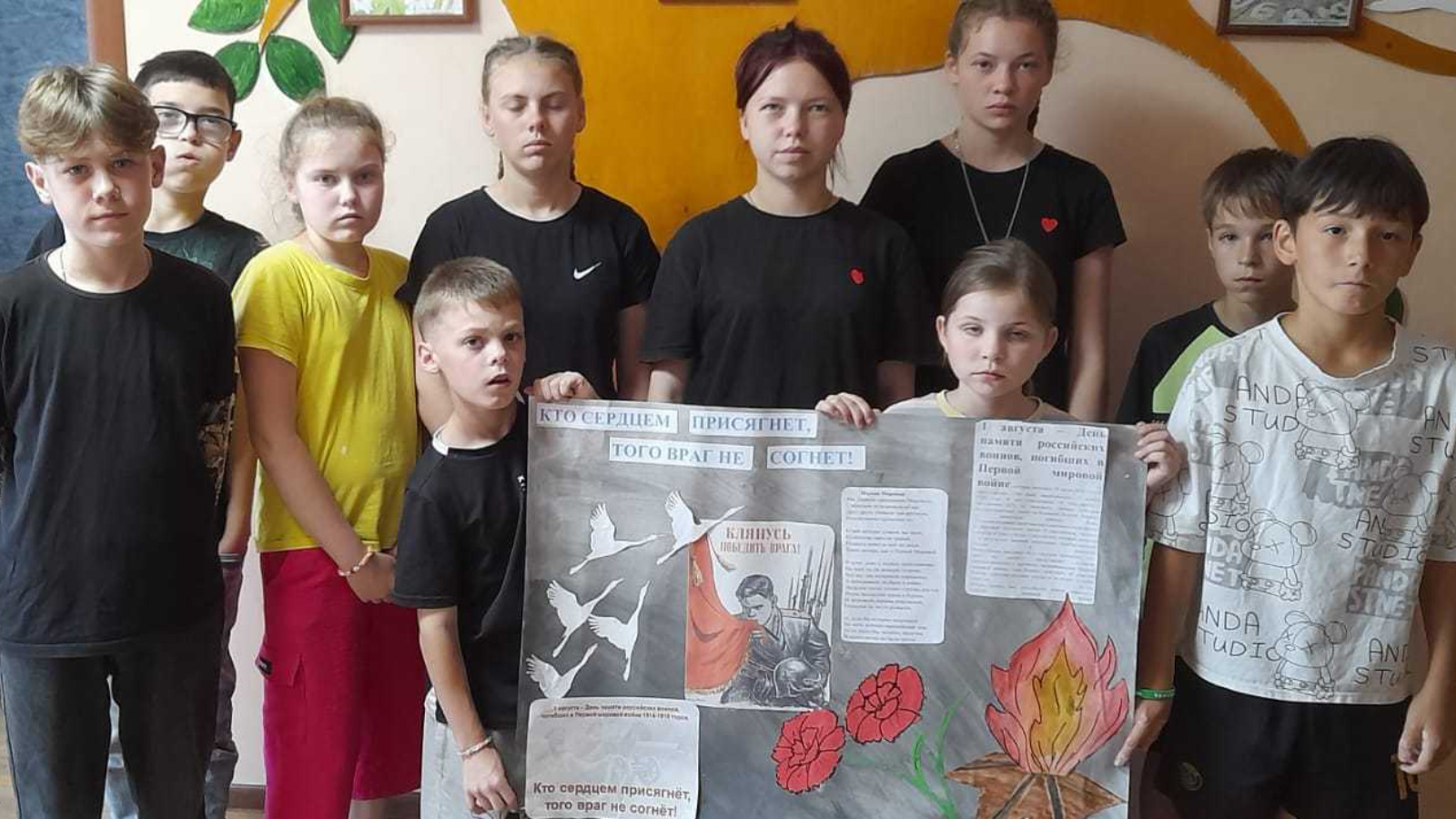 «Мечта»балалар һәм яшүсмерләр социаль приютында 1914-1918 еллардагы Беренче бөтендөнья сугышында һәлак булган Россия сугышчыларын искә алу көне алдыннан тәрбияләнүчеләр «Кем йөрәге белән ант итә, дошман аны сындырмас! " стена газетасы чыгару-безнең тәрбияләнүчеләргә кыюлык, намуслылык һәм батырлыкның нәрсә икәнен искә төшерү мөмкинлеге. Чөнки патриотик тәрбия кысаларындагы иҗади эшчәнлек Ватанга мәхәббәт тәрбияләргә,бабаларыбызга ихтирамлы мөнәсәбәт формалаштырырга һәм ныгытырга, патриотик хисләрне үстерергә ярдәм итә, шуның белән балаларның күңелләренә патриотизм бөртеге, Ватан алдында бурыч хисе сала.
